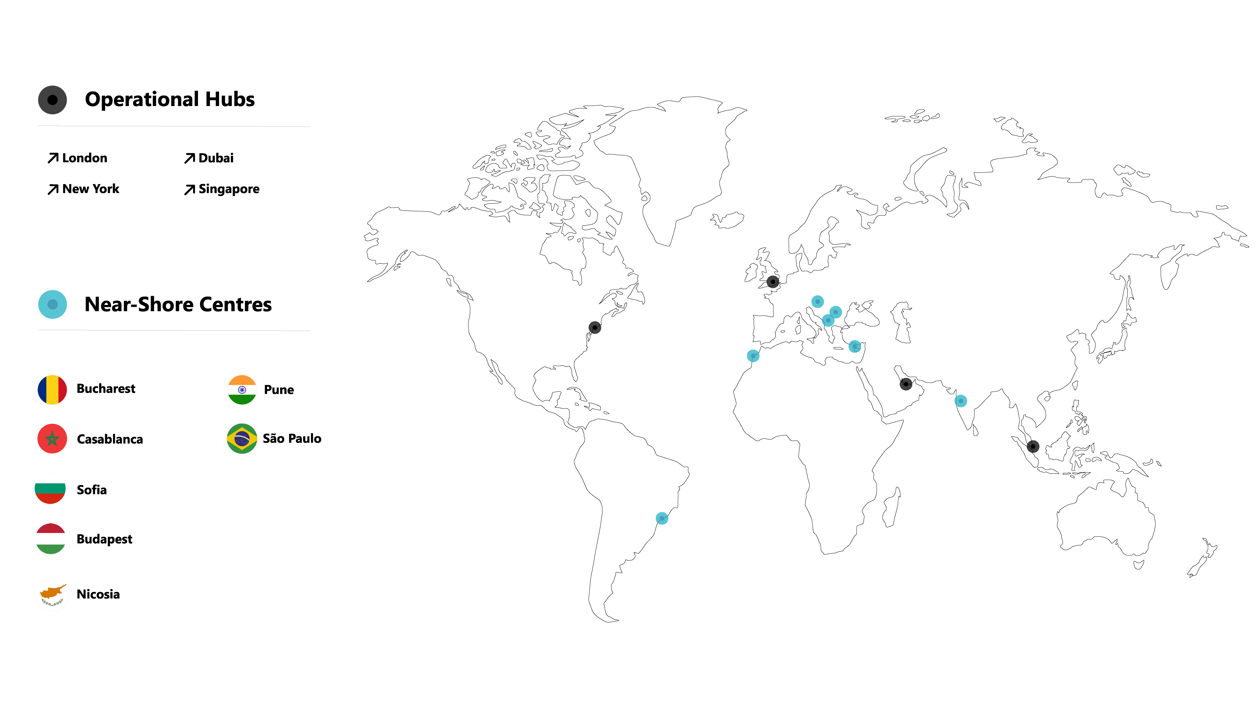 Our global presence and specialist nearshore capabilities enable us to deliver on-site and remotely. Most of our clients work with us on a nearshore basis, and we have a successful track record of service design and delivery under a mixed-shoring model.