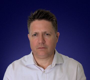 Headshot of Chris Harper, Strategic Advisor, in front of blue background